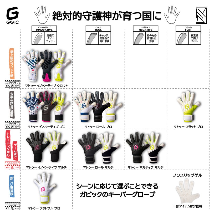 シーンに応じて選ぶことのできるGAViCのキーパーグローブ